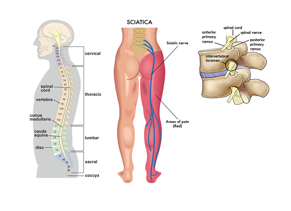 The sciatic nerve basically consist of 5 nerves roots, one of the large nerve fiber that begins from the lumbar spine and passes deep into the buttock area runs down to the thigh and to lower limb. Sciatica pain is the pain that felt over the areas supplied by the sciatica nerve i.e the sciatica pain starts from the lower back to behind the thigh and can radiate down ward below the knee. Sciatica most commonly occurs when the sciatica nerve is compressed by the slipped disc or narrowing of the spine.